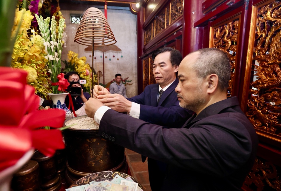 Chủ nhiệm Ủy ban Nhà nước về người Việt Nam ở nước ngoài Nguyễn Trung Kiên cùng các đại biểu dâng hương tại Thượng Cung