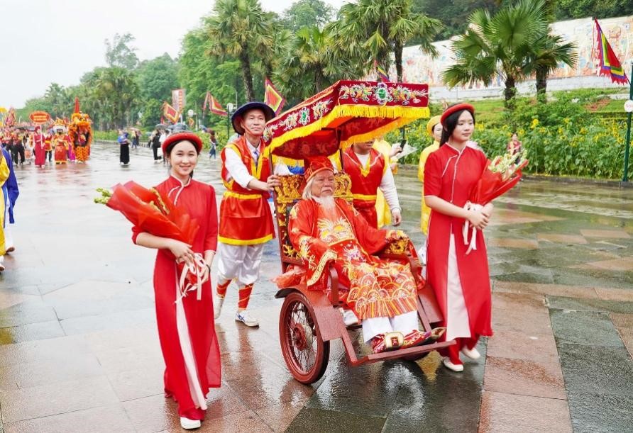 Du khách về Đền Hùng trong dịp Giỗ Tổ Hùng Vương không chỉ được hòa mình trong không gian thành kính trang trọng của lễ rước kiệu, mà còn được hiểu thêm về Tín ngưỡng thờ cúng Hùng Vương, từ đó nhân lên tình yêu quê hương, niềm tự hào về nòi giống “Con Rồng cháu Tiên”.