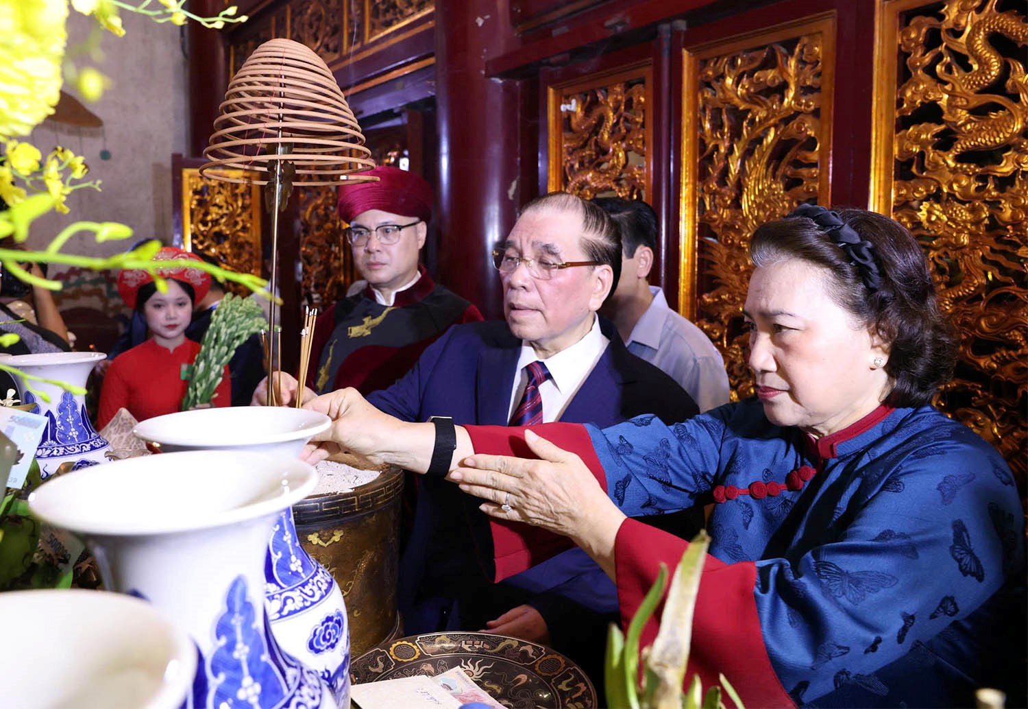 Nguyên Tổng Bí thư Nông Đức Mạnh và nguyên Ủy viên Bộ Chính trị, nguyên Chủ tịch Quốc hội Nguyễn Thị Kim Ngân dâng hương tại Thượng Cung