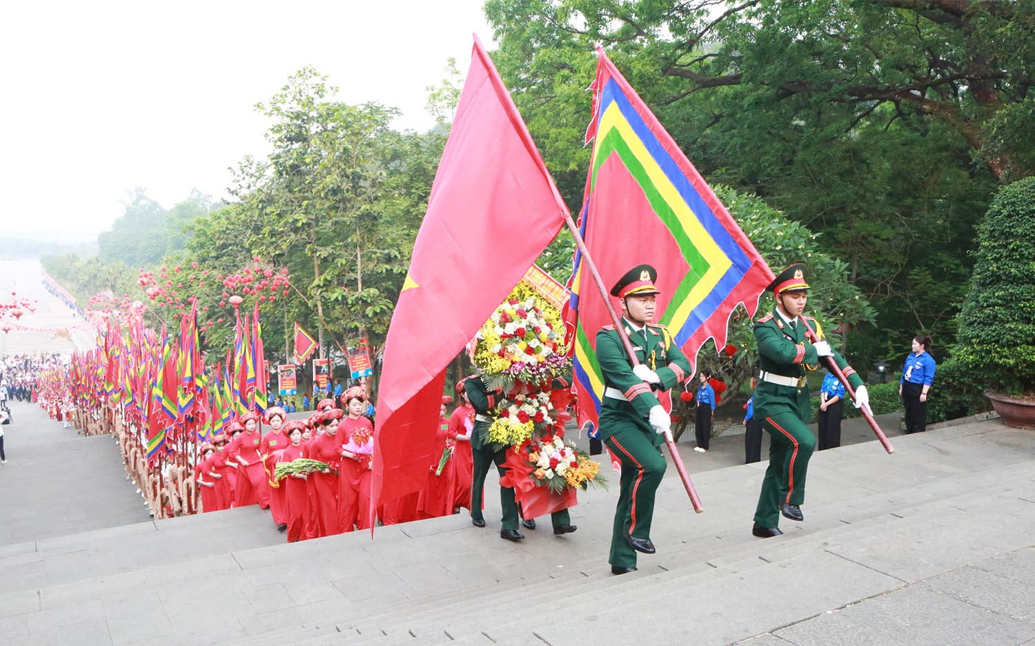 Đại biểu tỉnh Phú Thọ có các đồng chí: Phạm Đại Dương - Ủy viên Ban Chấp hành Trung ương Đảng, Bí thư Tỉnh ủy, Trưởng Đoàn ĐBQH tỉnh; Trần Duy Đông - Ủy viên dự khuyết Ban Chấp hành Trung ương Đảng, Phó Bí thư Tỉnh ủy, Chủ tịch UBND tỉnh, Chủ Lễ dâng hương.