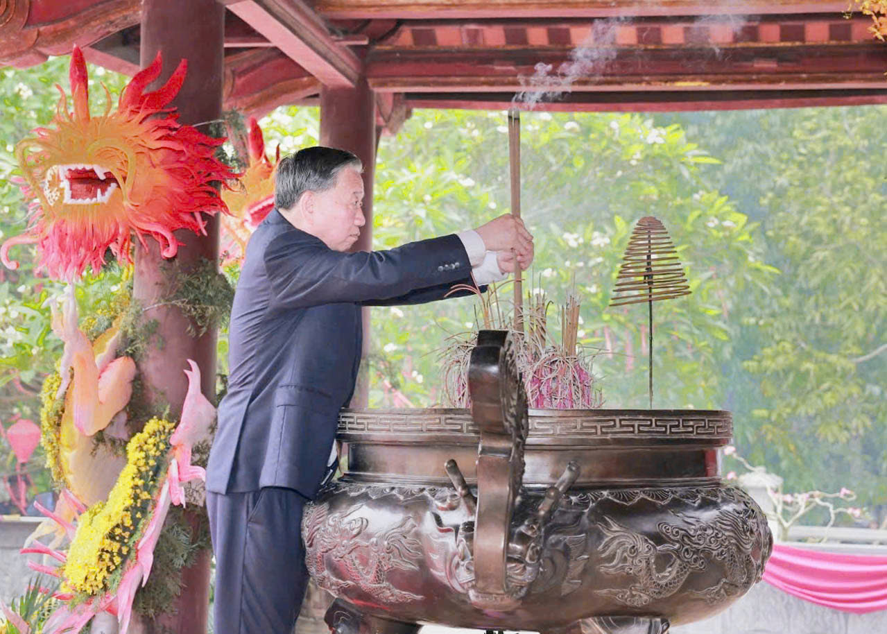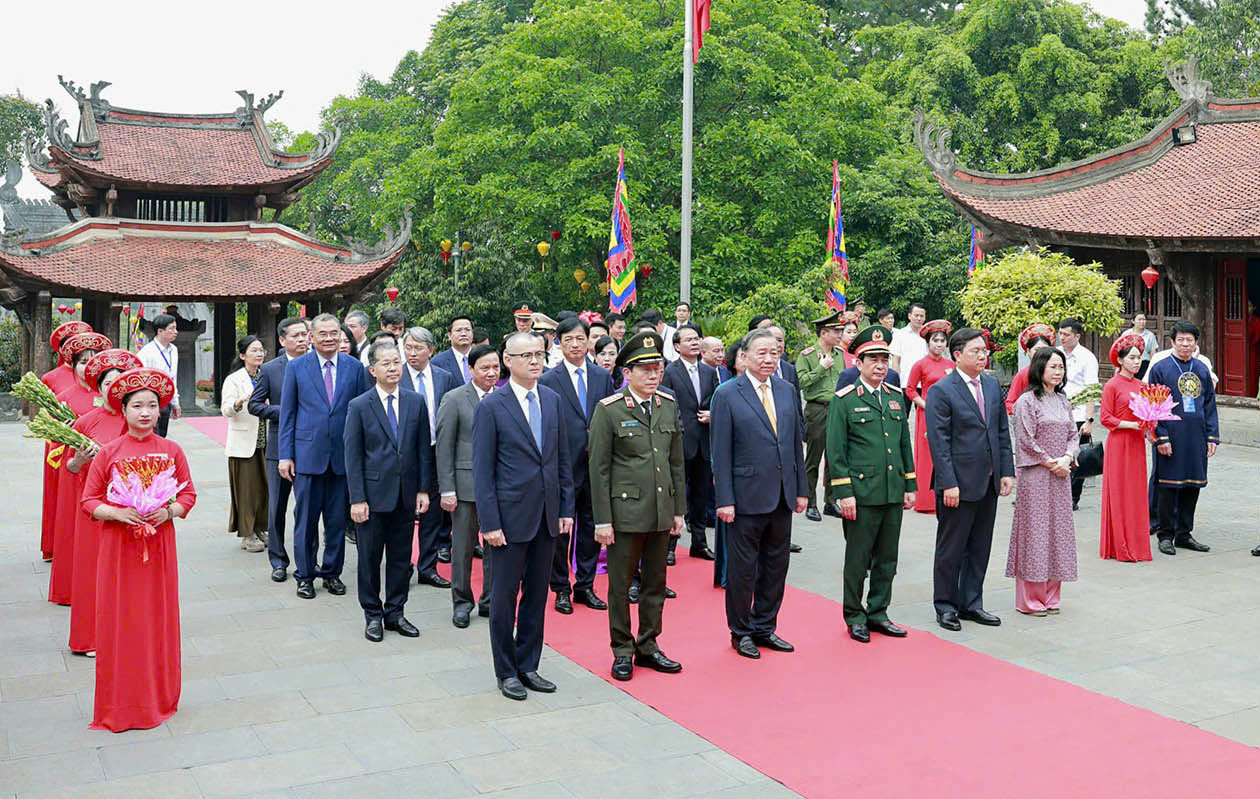 Tổng Bí thư, Chủ tịch nước Tô Lâm và các đại biểu thành kính dâng hương tại Đền Quốc Tổ Lạc Long Quân